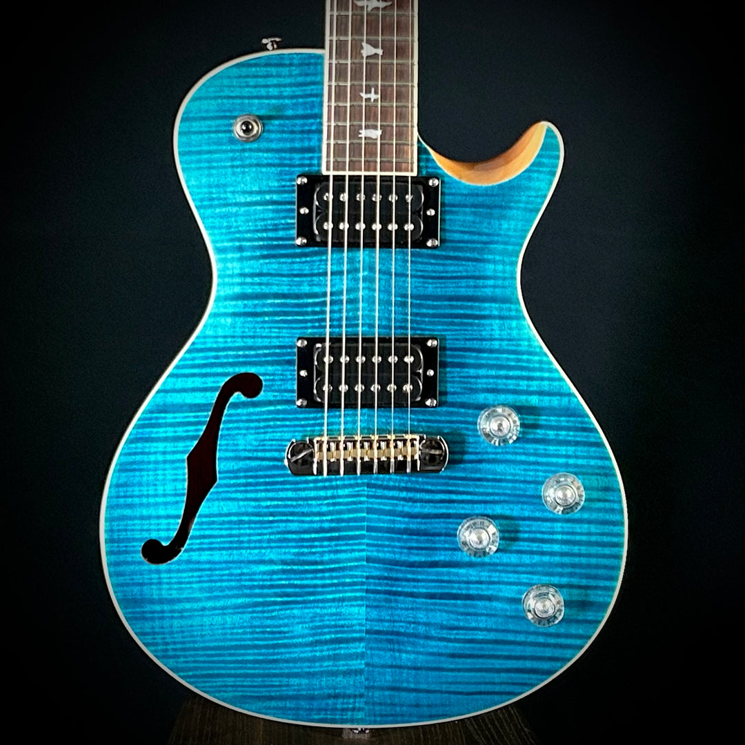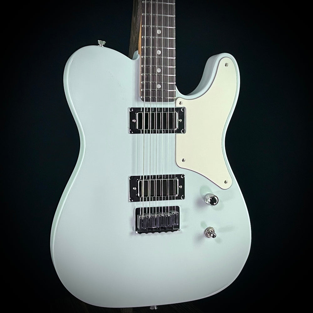 This new Music Villa Custom shop Martin OM showcases premium craftsmanship with a genuine mahogany back and sides paired with a spruce top. This custom shop instrument features a striking blue finish with pale moon striped ebony fingerboard and bridge, complemented by a Martin block logo with antique white inlay.