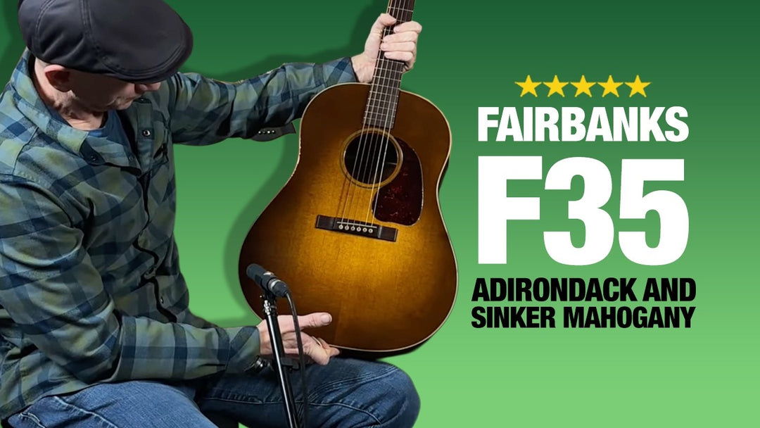 Used (2024) Fairbanks F-35. AAAA Sinker Mahogany back & sides with Torrefied Adirondack top. Also features Brazilian RW fingerboard and bridge, relic Waverly tuners and a relic finish. This is a monster guitar with tremendous sound and volume.