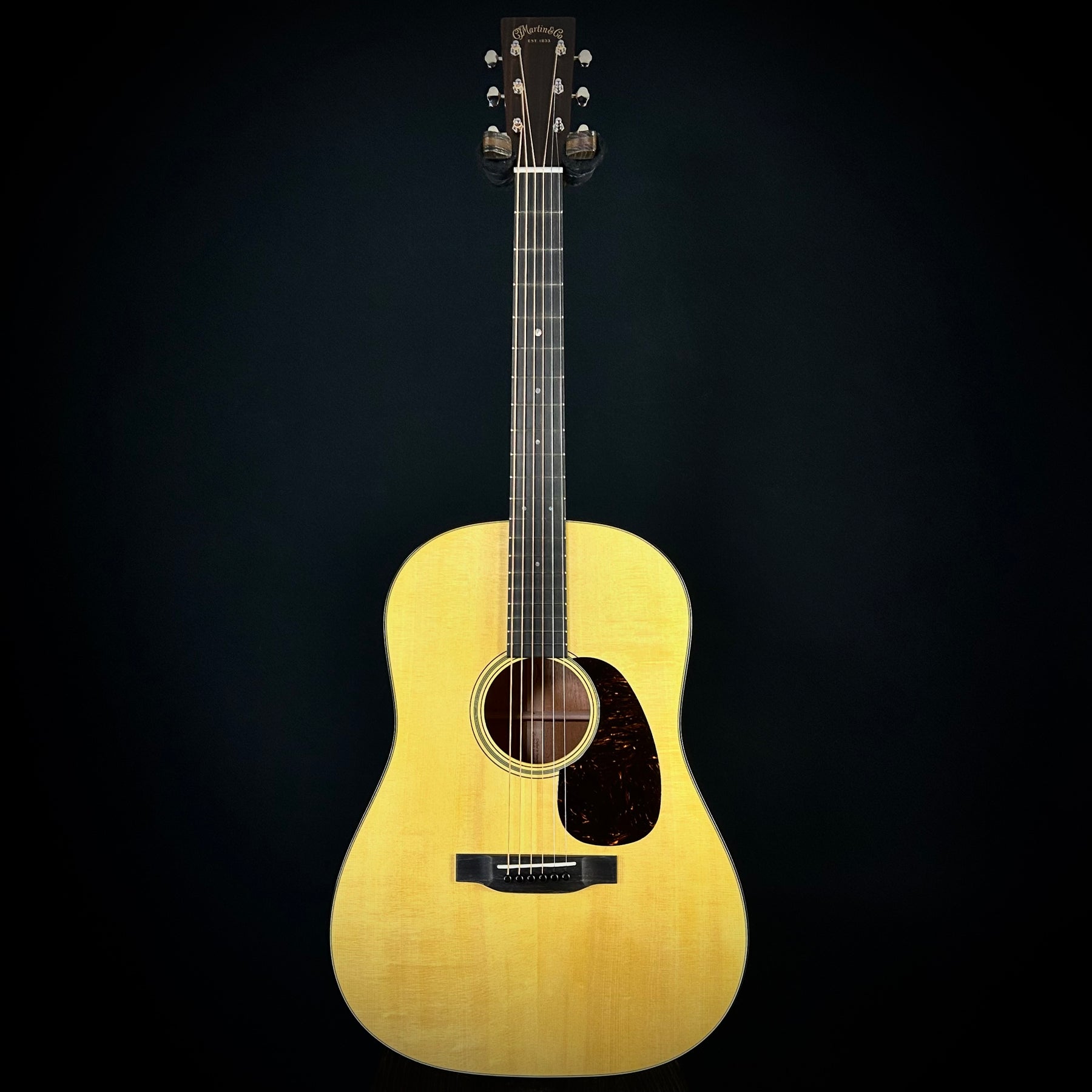 Our own Music Villa custom shop Martin 18 style 12-fret dreadnought featuring mahogany back & sides with High Altitude Swiss spruce top (sanded to .105″) Includes our usual MV specs, 25.4" scale, Golden Era style bracing, genuine Mahogany 12/4 neck, 1 3/4″ bone nut (on an angle).