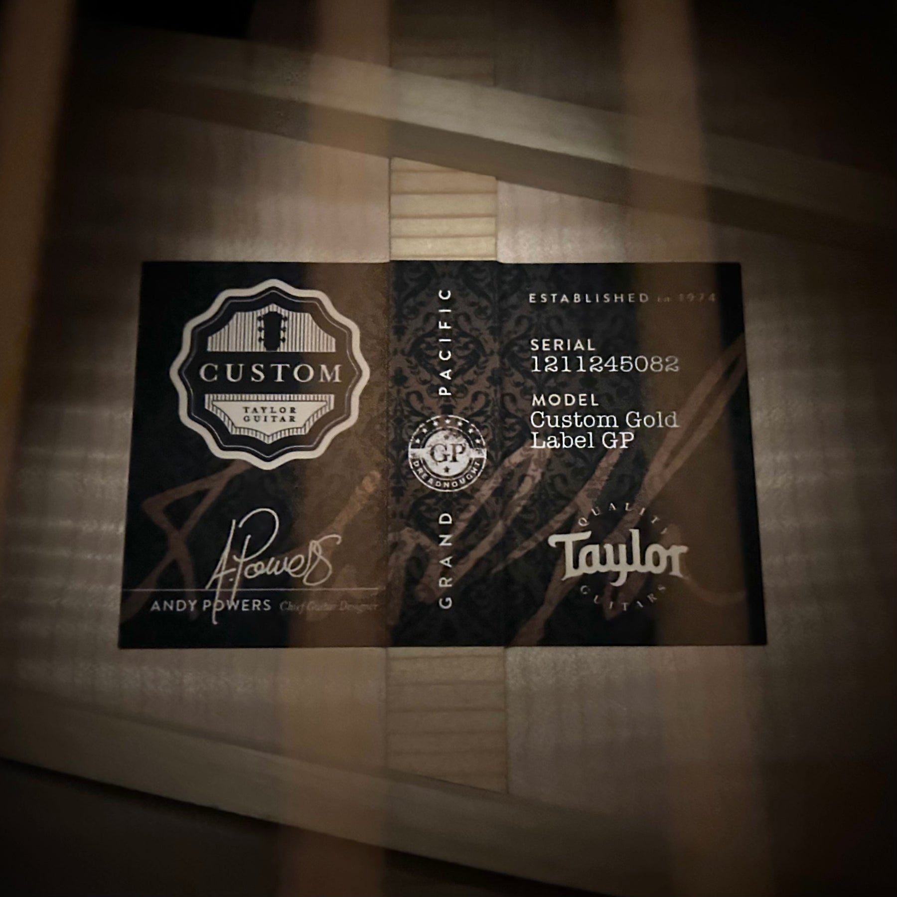 Taylor custom shop gold label featuring big leaf maple with solid sitka spruce top. The body size on this guitar is a deep body grand pacific offering more volume with deep tone and projection. This guitar features a light tans-black finish over the entire guitar.