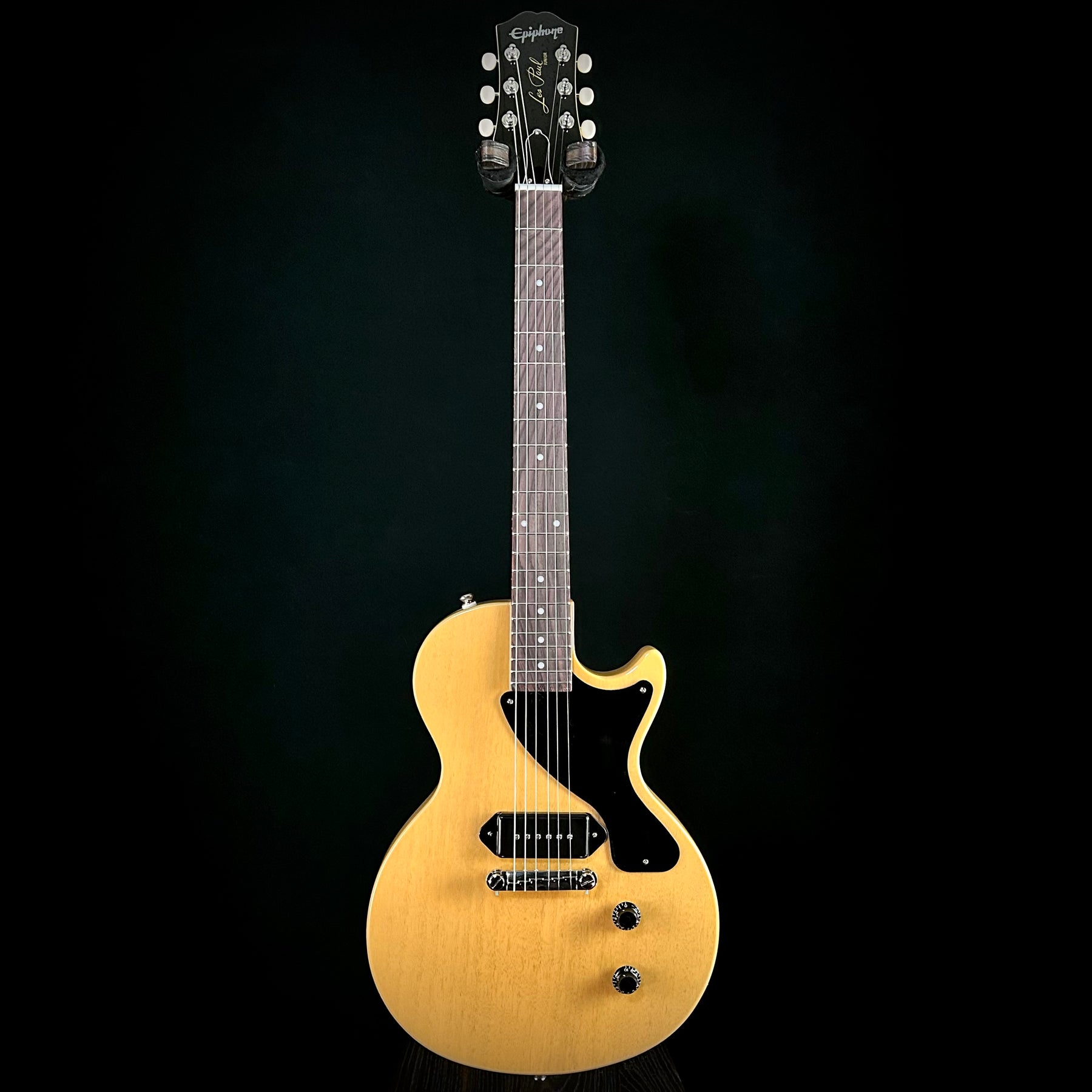 The Les Paul Junior was first introduced in 1954 as an affordable option for students and beginners, featuring a stripped-down design with a slab mahogany body and single pickup. This guitar quickly gained favor among professional musicians for its raw, unfiltered tone and sonic purity. The single-cutaway mahogany body delivers punchy midrange and impressive sustain, while the single dogear P-90 pickup provides biting, articulate sound that responds dynamically to playing style. With simplified master volume and tone controls, this guitar offers straightforward operation for classic rock, blues, and punk styles.