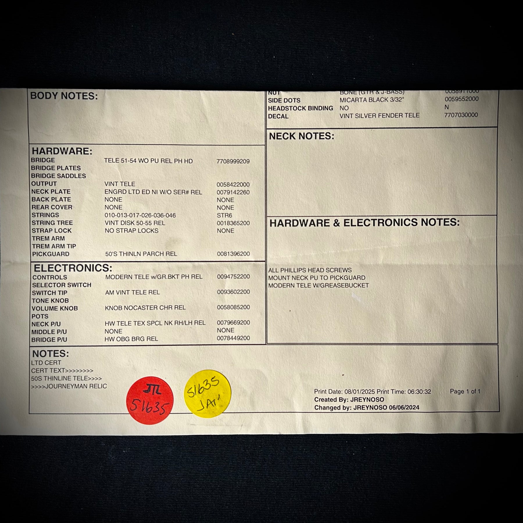 • Pickups: Handwired Texas Special (Neck) / Handwired Original Blackguard (OBG) (Bridge)