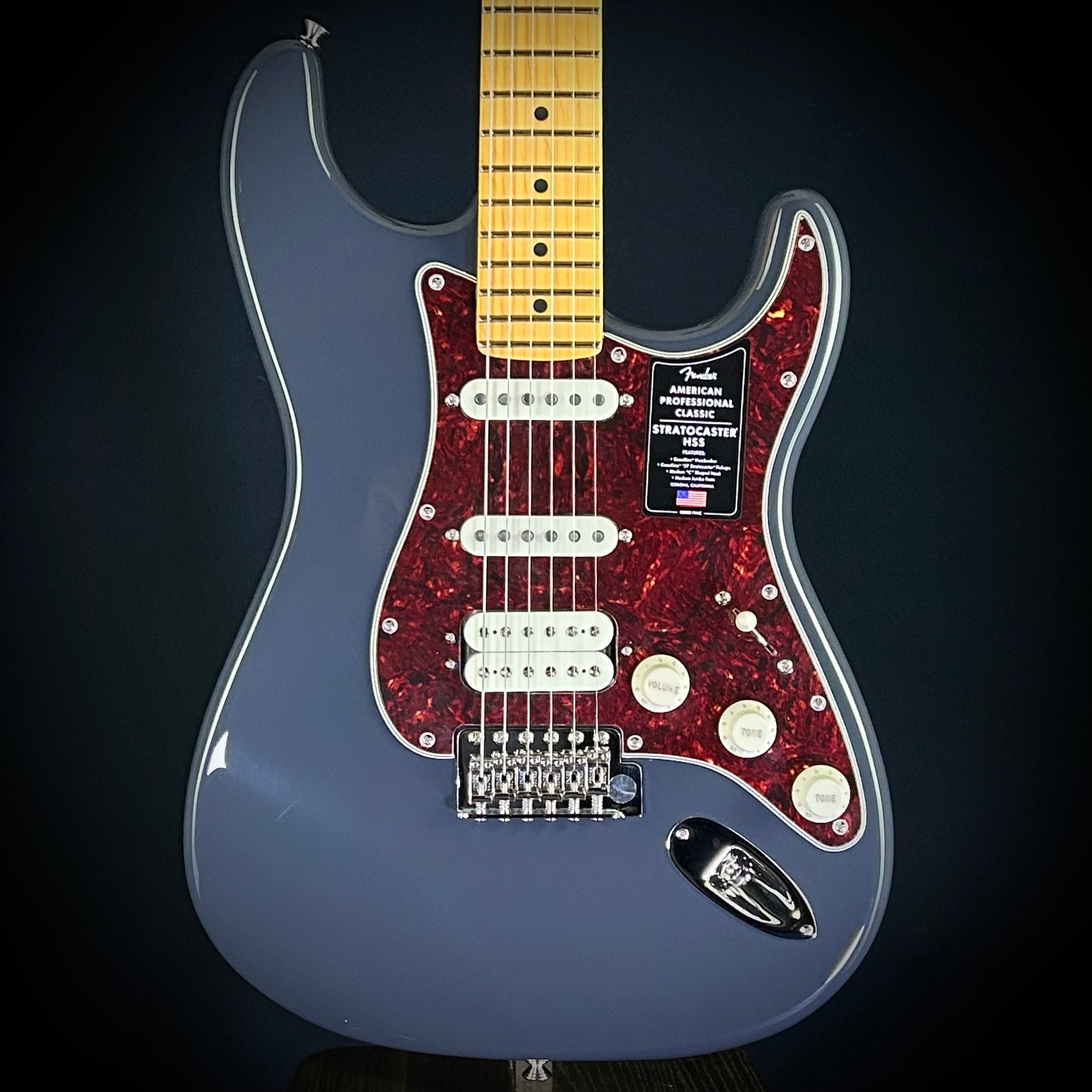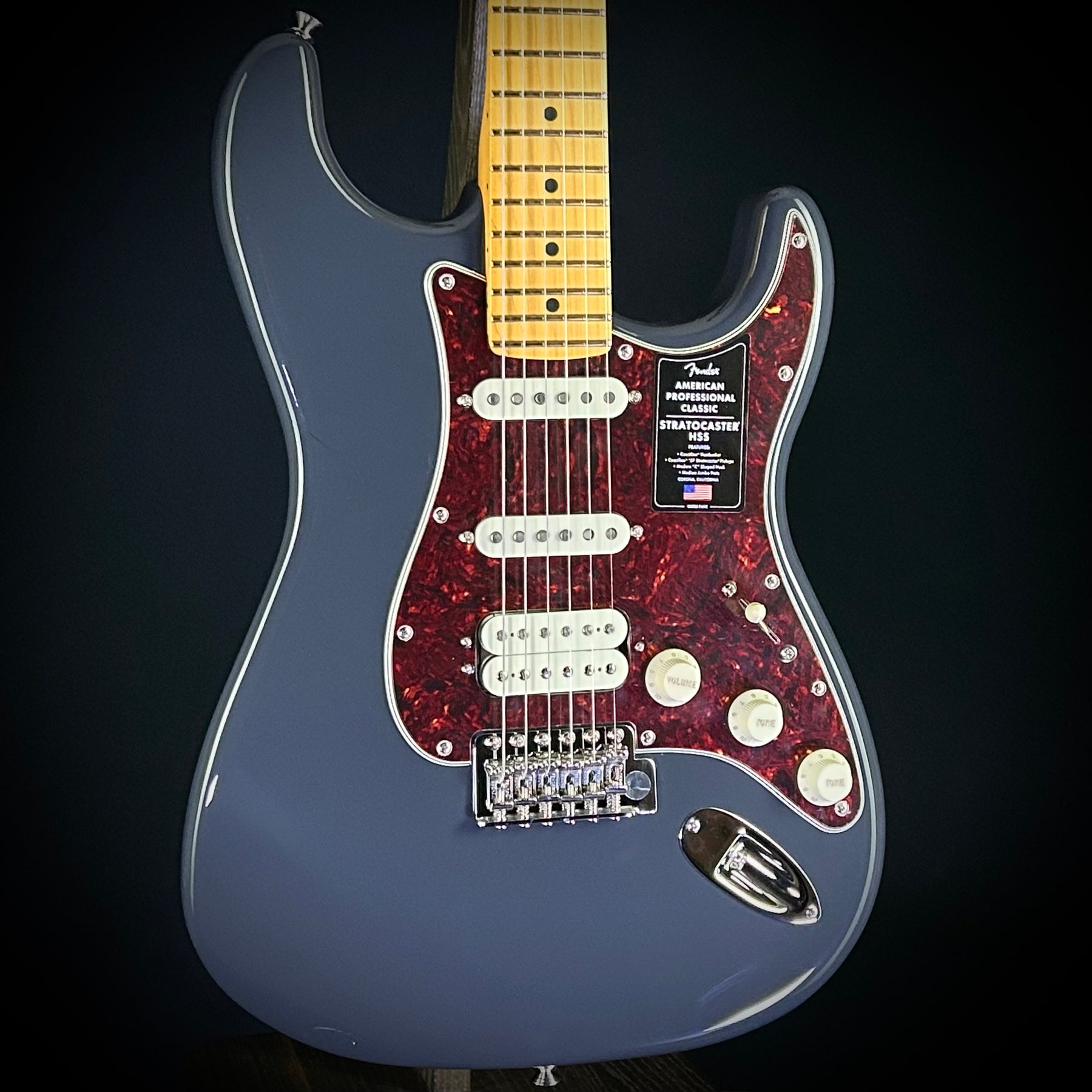 The American Professional Classic Stratocaster HSS blends vintage charm with modern performance. This professional-grade instrument features vintage-inspired Coastline '57 Stratocaster pickups and a Coastline humbucker that deliver depth, punch, and sparkle. The Modern C-shaped neck provides exceptional comfort and playability, while the 9.5-inch radius fingerboard with medium jumbo frets offers fast fretting and easy playability. Fender Staggered ClassicGear tuners combine classic looks with precise tuning stability. The guitar features custom-faded finishes and vintage-style synchronized tremolo, along with the Greasebucket Tone System that tames treble frequencies without sacrificing gain or adding unwanted bass.