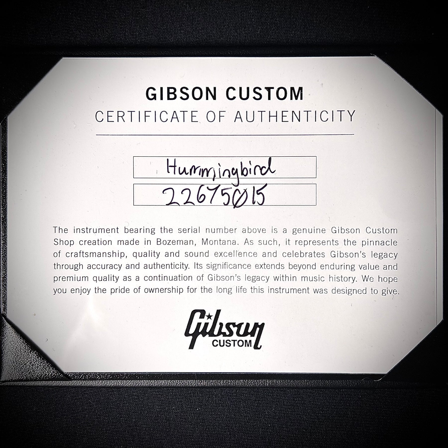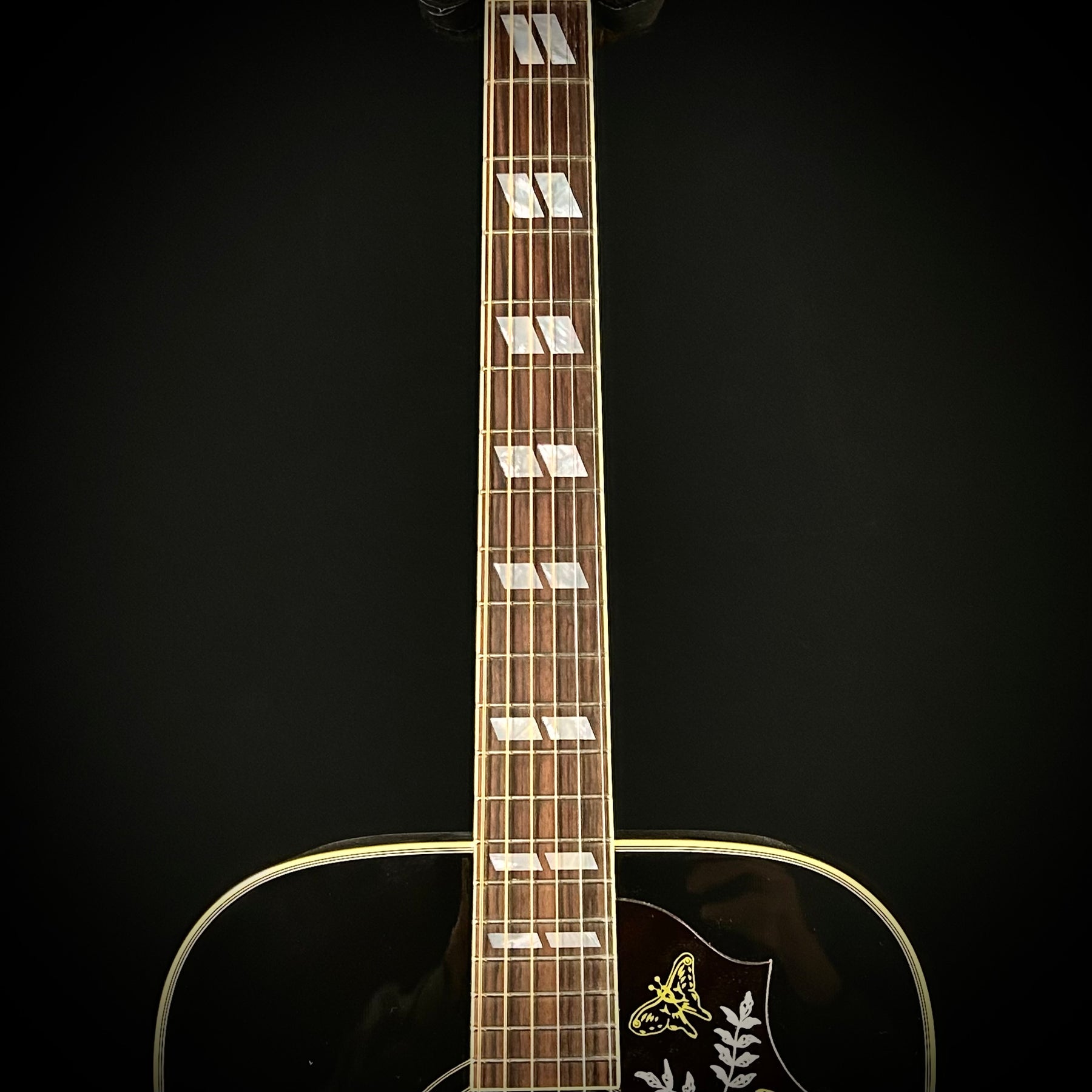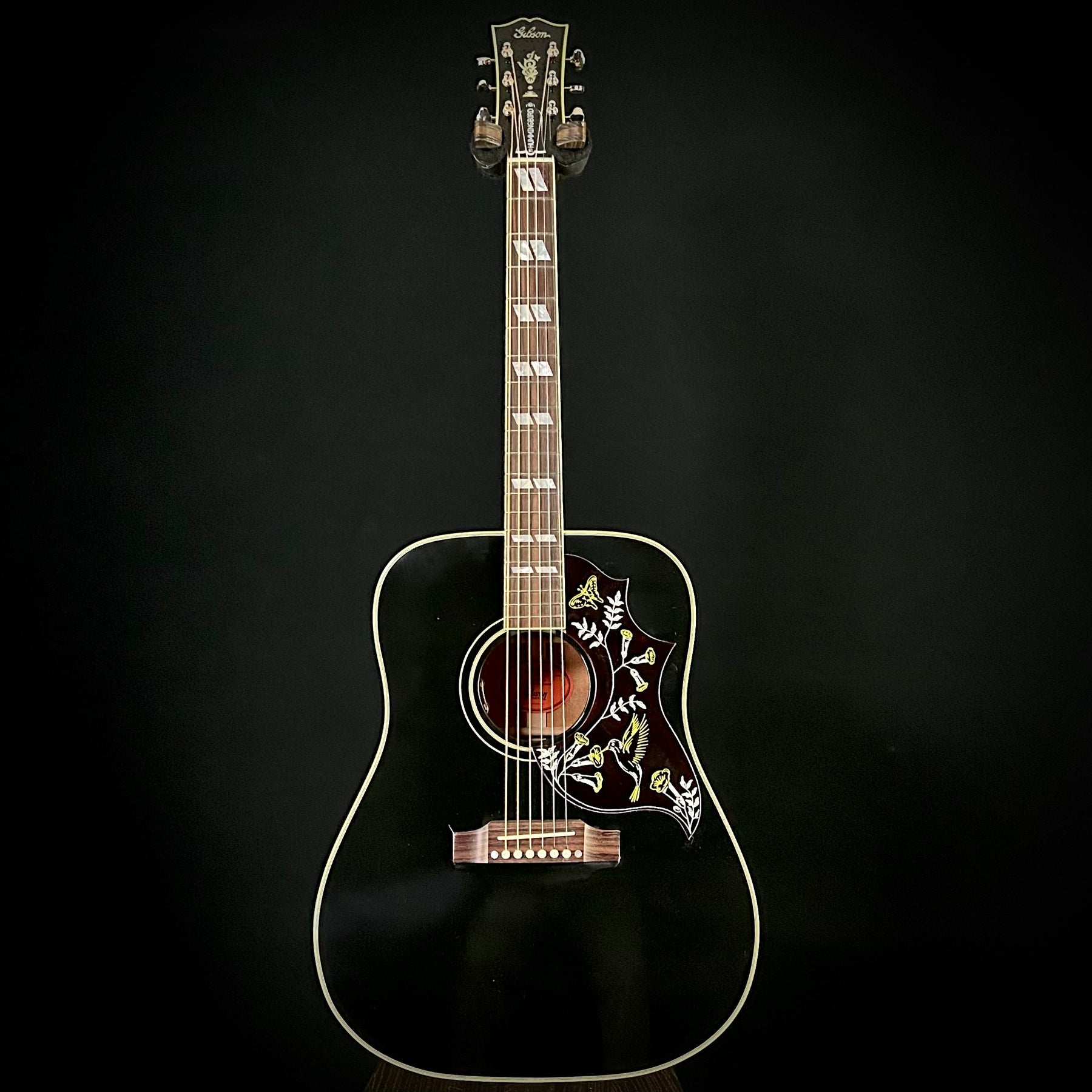 Gibson Custom Hummingbird Torch with Gloss Ebony finish. Mahgany back adn sdies, Sitla spruc etop Traditional Hummingbird pickgaurd.