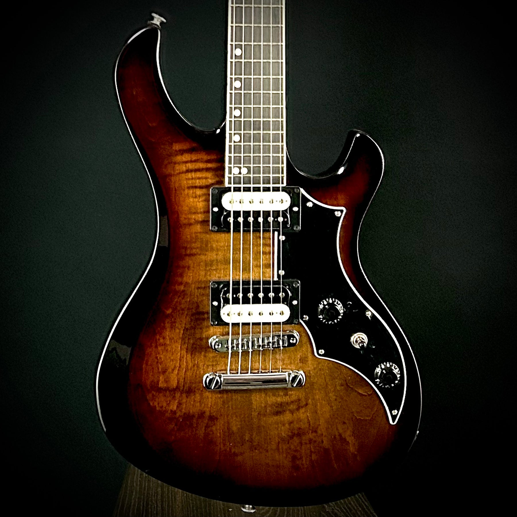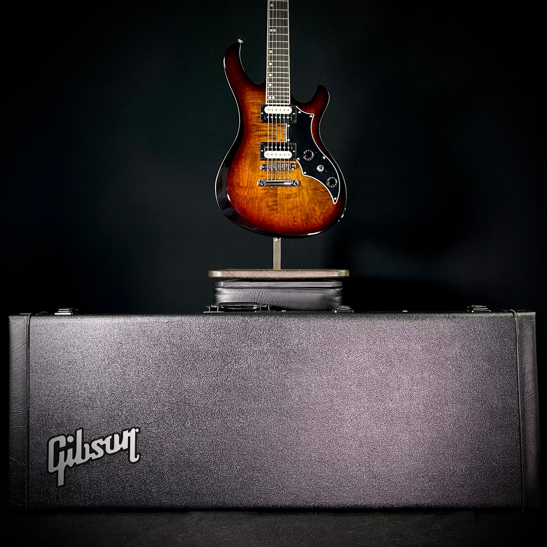 The new Gibson Victory Figured Top was created in response to player requests for the return of this 80s-era cult favorite. Crafted for limitless self-expression, it carries the DNA of the original versions with enhanced features such as refined body contours, improved weight and balance, and an Explorer™ headstock. The Victory Figured Top has a 25.5” scale length, and the mahogany neck has an ebony fretboard with a compound radius for enhanced playability, a SlimTaper™ profile, and 24 medium jumbo frets. The mahogany body has an AA figured maple cap, a Tune-O-Matic™ bridge, a Stop Bar tailpiece, and a gloss nitrocellulose lacquer finish. The highly flexible electronics include two 80s Tribute humbucker™ pickups wired to push/pull master volume and tone controls for coil splitting and inner/outer coil selection when the coils are split, which, along with the three-way pickup selector switch, deliver a wide range of humbucking and single coil tonal options with a minimum number of controls.