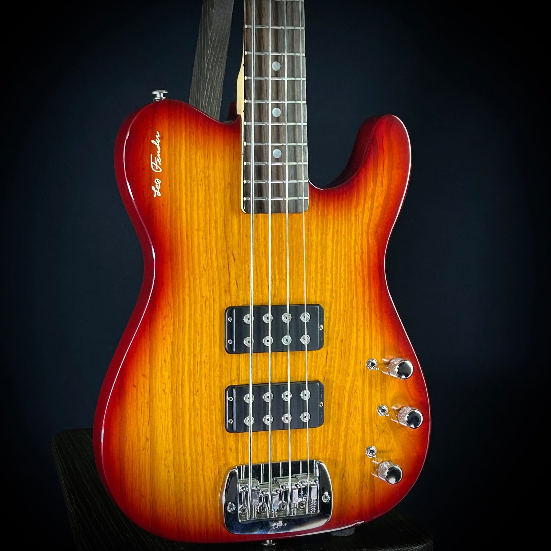 The G&L ASAT Bass features a 4-string, 34-inch scale length design with a legendary T-style outline blended with a comfortable backside contour. Powered by a duo of MFD bass humbuckers, this bass is appointed with chrome hardware, including 12:1 Ultra-Lite tuners and a Saddle Lock bridge. The instrument features 21 medium-jumbo nickel silver frets. The electronics include MFD bass humbuckers in the bridge and middle positions with dedicated Bass and Treble tone knobs, a master Volume control, and a trio of switches for Series and Parallel operation, preamp toggle, and Treble Boost. Hard shell case included.